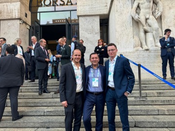 Photo: CEO of Pewas Ivo Krpelan and General Partner of Zero One Hundred Venture Capital Michal Csonga and Adam Ďurica at Palazzo Mezzanote, Milan